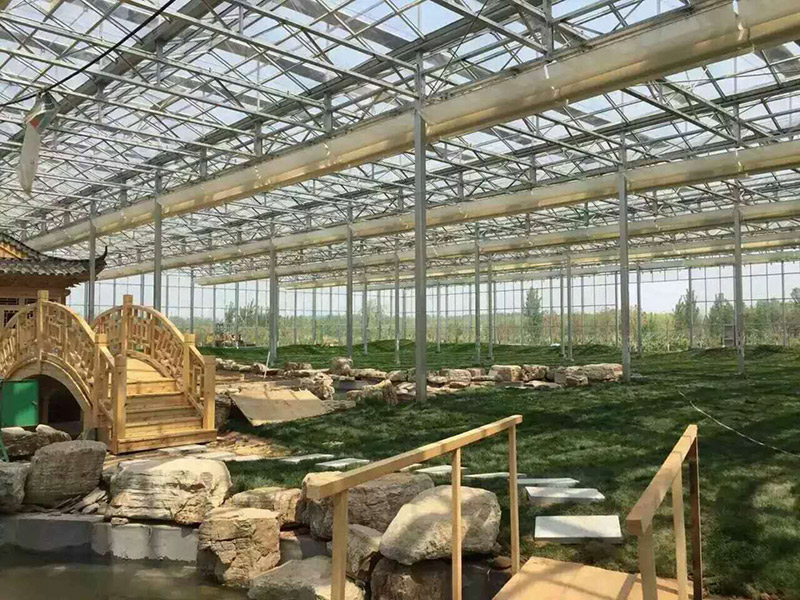 我們承建的生態(tài)餐廳,克服了種植溫室易結(jié)露,視野小的弊端,以大空間,舒適、環(huán)保為理念,設(shè)計開發(fā)了高屋脊、大跨度、大空間的用類型,覆蓋材料采用玻璃或PC板,外形造型美觀,恢弘大氣,內(nèi)部視野開闊,寬敞明亮。置身與其中,既能感受田園的韻味,又能享受美味佳肴。