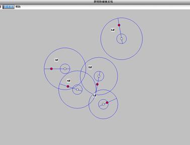 群塔干涉系統須建立在單套設備基礎之上,通過對塔機高度、幅度、回轉角度的采集,立體建模,通過中心計算機軟件計算從而實現群塔之間相互預警,防碰撞功能。具體功能如下: 報警功能,區域作業內的塔機轉動到干涉范圍后,如果存在干涉的兩臺塔機滿足干涉報警條件時:距離小于設定的預警距離,大于報警距離時,裝有監控設備的塔機發出斷續的聲光報警提示;距離小于設備的報警距離時,發出連續的強烈的聲光報警提示的同時,控制輸出信號控制塔機高度上下行動作、小車前進后退動作,但不控制回轉輸出。 數據顯示:區域范圍內作業的塔機通過Zigbee將塔機的實時發送到現場主機,現場主機可以對接收到的信息進行統計和數據分析,同時界面顯示圖片可以清晰的看到塔機大臂和小車運行位置。