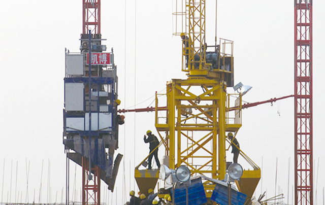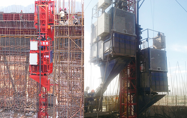 該機可以做到一機多用,是運送鋼筋、混凝土及施工人員的三合一型設備,廣泛應用于電力建設中的煙囪和冷卻塔施工。