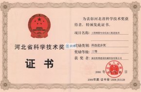 河北省科學技術獎三等獎 現代工程建設動臂式大型起重機