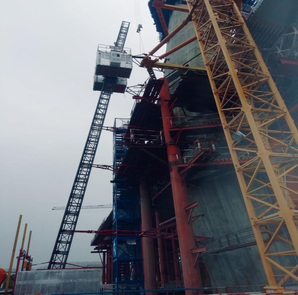 近日,廊坊凱博建設機械科技有限公司生產的斜、直線兩用施工升降機順利投入到廣東佛山“三水三橋”項目。