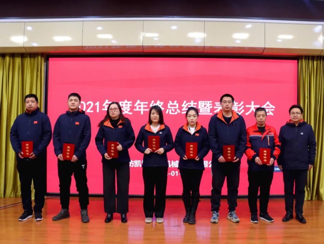 田國承宣讀凱博科技2021年度表彰文件,與會領(lǐng)導(dǎo)為優(yōu)秀員工頒獎。